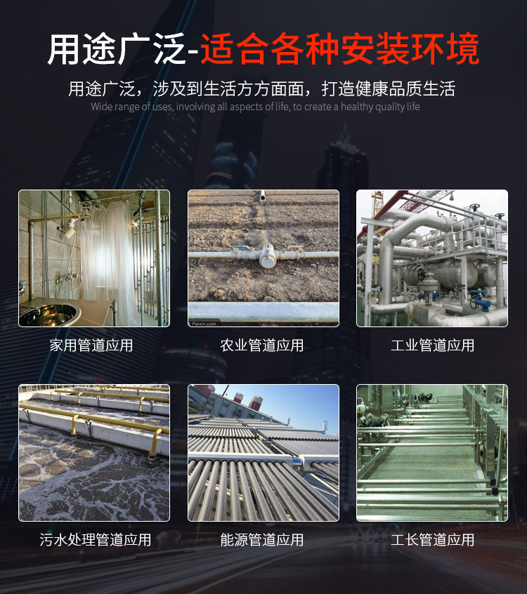 廣泛用于醫(yī)院、酒店、住宅小區(qū)、寫字樓、學校等工程配套管道系統(tǒng)